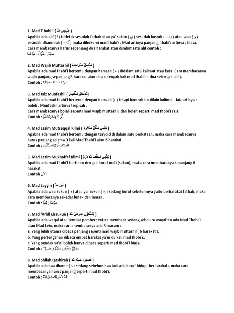 Hukum Bacaan Mad Jenis Amp Macam Macam Lengkap