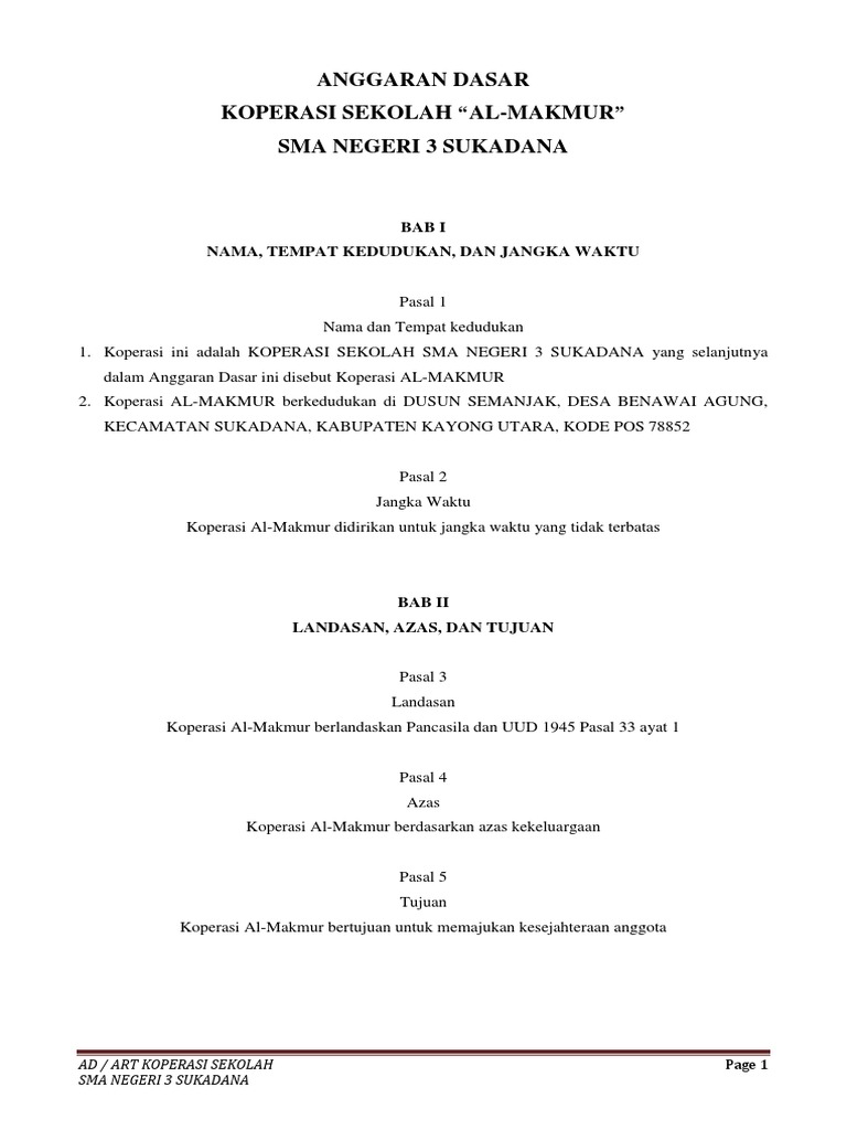 Contoh ad art koperasi. Sanggup membayar simpanan wajib yang telah ditetapkan dalam anggaran dasar koperasi dan pelaksanaanya diatur dalam art koperasi. Terima kasih sangat bermanfaat sebagai contoh penyusunan adart. 1 berdasarkan rapat anggota pada hari rabu tanggal 9 oktober 2002 telah terbentuk nama koperasi yang diberi nama yaitu laras berikut dengan susunan pengurus koperasi. Contoh ad art koperasi serba usaha lengkap juga mencakup aturan koperasi diantaranya bagaimana memutuskan suatu masalah bagaimana pengelolaan aset bagaimana mencari dan membina mitra dan juga bagaimana mekanisme pembagian shu pada rat di akhir tahun anggaran. Yang dapat diterima menjadi anggota koperasi kasih karunia adalah seluruh guru dan pegawai yang berada dilingkungan smp n2 aifat yang telah menyetujui adart koperasi kasih karunia 4. Anggota koperasi adalah pemiliki sekaligus pengguna jasa koperasi 3.