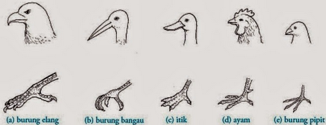 Bentuk mulut serangga yang berbeda beda sesuai dengan fungsinya. Adaptasi morfologi pada burung juga dapat dilihat pada macam macam bentuk kakinya.