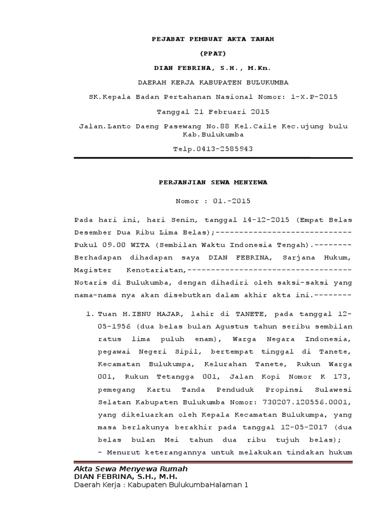 Contoh akta otentik pdf. Nomor akta sesuai urutan dan mencantumkan tahun pembuatan akta contohnya. Akta notaris atau notariil akta dalam pasal 1 angka 7 uujn dimaknai sebagai akta otentik yang dibuat oleh atau di hadapan notaris menurut bentuk dan tata cara yang ditetapkan dalam uu inisecara gramatikal dalam kamus besar bahasa indonesia akta dimaknai sebagai surat tanda bukti berisi pernyataan keterangan pengakuan keputusan dsb tentang peristiwa hukum yang dibuat menurut. Tidak jarang bagi konsumen untuk membuat kesalahan dengan menandatangani kontrak tanpa membacanya terlebih dahulu. 012013 akta jual beli dibuat dalam beberapa kopi. Suatu akta otentik ialah suatu akta yang dibuat dalam bentuk yang ditentukan undang undang oleh atau di hadapan pejabat umum yang berwenang untuk itu seperti notaris hakim panitera juru sita pegawai pencatat sipildi tempat akta itu dibuatvide pasal 1868 kuhperdata pasal 165 herziene indonesisch reglemen hir dan pasal 285 rechtsreglement buitengewesten rbg. Suatu akta otentik ialah suatu akta yang dibuat dalam bentuk yang ditentukan undang undang oleh atau dihadapan pejabat umum yang berwenang untuk itu seperti notaris hakim panitera juru sita pegawai pencatat sipildi tempat akta itu dibuatvide pasal 1868 kuhperdata pasal 165 herziene indonesisch reglemen hir dan pasal 285 rechtsreglement buitengewesten rbg.