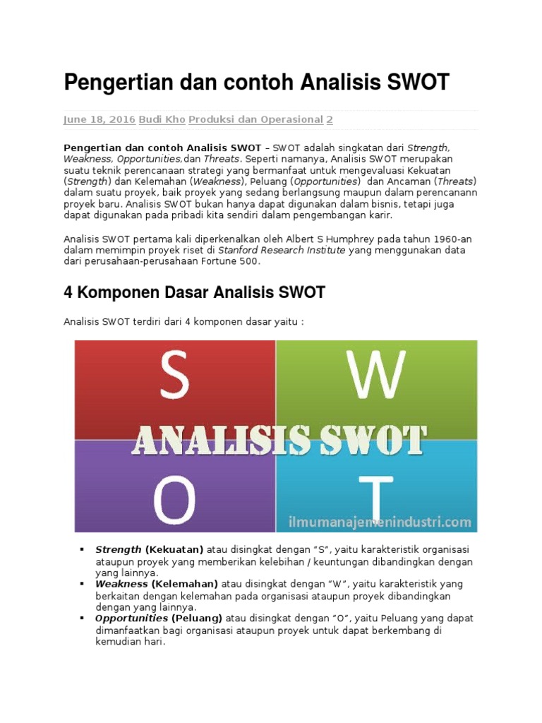 Berikut ini beberapa contoh analisis swot. Contoh analisis swot organisasi produk makanan dan diri sendiri materi pembahasan kali yakni tentang contoh analisis swot yang akan guruakutansicoid paparkan secara lengkap mulai dari pengertian tujuan dan contohnyanah untuk lebih jelasnya mari langsung aja simak ulasan berikut ini. Analisis swot pengertian manfaat unsur cara membuat dan contohnya memimpin suatu perusahaan yang mampu mengelola kegiatan tertentu pasti membutuhkan sistem serta ketentuan tertentutujuannya tentu saja agar menjaga suatu perusahaan tetap berjalan dan untuk dapat bersaing dengan pesaing lainnya.