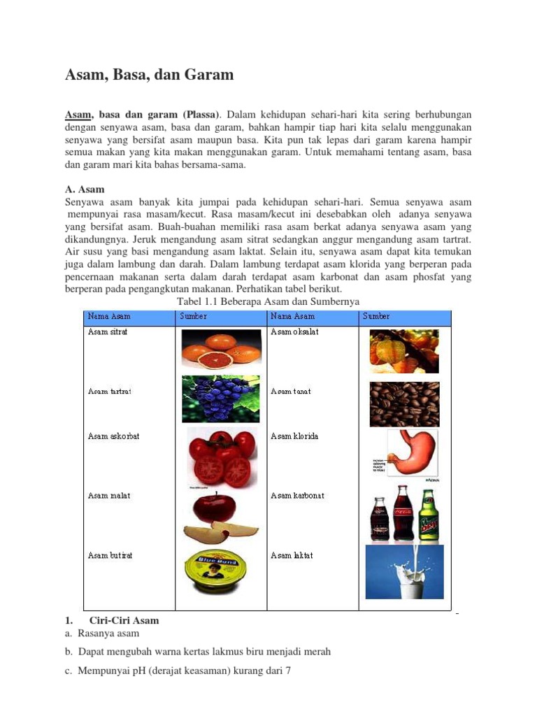 Asam juga dapat diartikan zat yang dapat memberi proton ion h kepada zat lain yang disebut basa atau dapat menerima pasangan elektron bebas dari suatu basa. Sekarang silahkan kalian simak beberapa contoh garam yang telah dikenal dalam kehidupan sehari hari pada tabel di bawah ini. Sementara itu di dalam konsep kimia garam merupakan senyawa ion yang terbentuk dari penggabungan ion negatif sisa asam dengan ion positif sisa basa. Dalam makanan minuman buah buahan air hujan bahkan di dalam tubuh kita. Lebih lanjutnya perhatikan contoh asam basa dan garam dalam kehidupan sehari hari berikut ini. Dalam kimia asam adalah senyawa kimia yang bila dilarutkan dalam air akan menghasilkan larutan dengan ph lebih kecil dari 7.