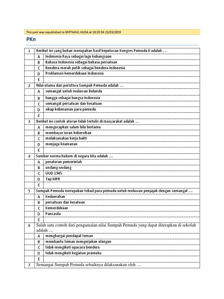 Soal Uas Pkn Kelas 5 Sd Semester 1 Docx