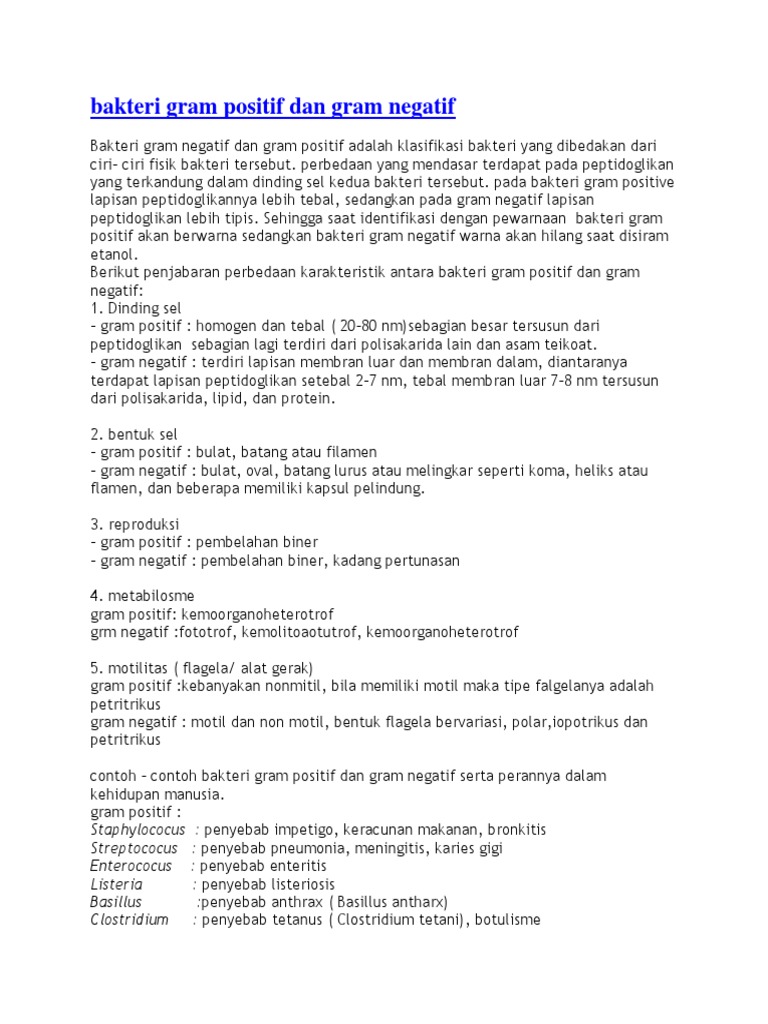 Bakteri gram negatif adalah bakteri yang tidak mempertahankan zat warna kristal violet sewaktu proses pewarnaan gram sehingga akan berwarna merah bila diamati dengan mikroskop. Pada tahun 1884 seorang dokter dan denmark hans christian gram mengembangkan teknik untuk membedakan jenis bakteri berdasarkan ketebalan lapisan apa itu pengertian bakteri gram positif dan negatif dan perbedaannya dibahas dengan jelas disini semoga bermanfaat. Perbedaan yang mendasar terdapat pada peptidoglikan yang terkandung dalam dinding sel kedua bakteri tersebut. Pengertian bakteri gram positif dan negatif dan perbedaannya adalah topik yang kami ulas. Gram negatif dan gram positif adalah klasifikasi bakteri yang dibedakan dari ciri ciri fisik bakteri tersebut. Bakteri gram negatif berwarna merah atau merah muda di bawah mikroskop dengan penambahan counter noda.