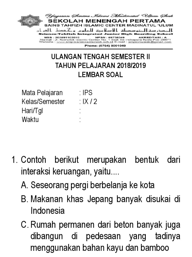 Makanan khas jepang banyak disukai di indonesia c. Bagi bapak dan ibu guru smp sebentar lagi akan memasuki akhir semester ganjil atau gasal biasanya akan disibukkan dengan membuat soal untuk ujian akhir semester uas atau sekarang di kurikulum 2013 dinamakan pas penilaian akhir semester. Terdapat beberapa kondisi yang saling bergantung yang diperlukan untuk terjadinya interaksi keruangan tersebut yakni. Ketiga pendekatan tersebut yaitu analisis keruangan kelingkungan atau ekologi dan kompleks wilayah. Bahkan sering kali bentuk interaksi yang terjadi menimbulkan kultur baru di masyarakat. Berikut merupakan bentuk bentuk interaksi sosial disosiatif beserta contohnya.