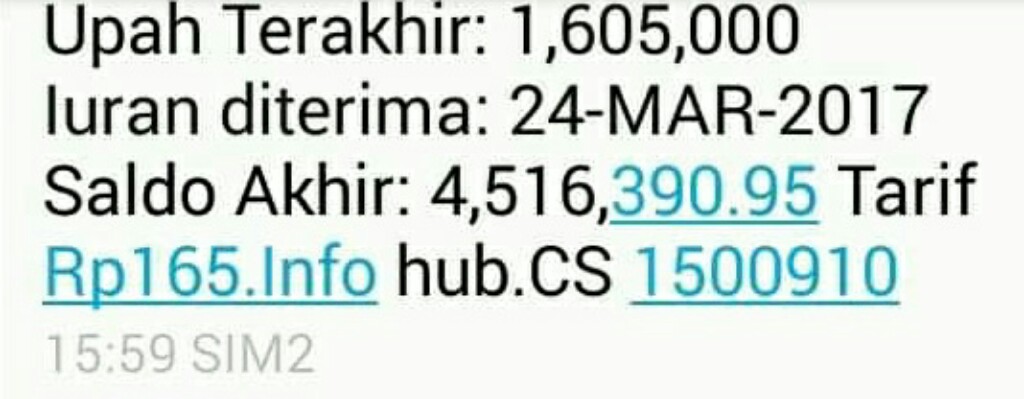 Contoh cek saldo jamsostek via sms. Bisa dibilang ini adalah informasi cara cek saldo jht jamsostekbpjs ketenagakerjaan via sms terbaru di 2019. Cara cek saldo jht bpjs ketenagakerjaan via sms gateway. Selanjutnya dalam cara cek saldo jamsostek via sms 2017 ini setelah registrasi berhasil lalu langkah selanjutnya menjadi lebih mudah. 165 per sms namun ini merupakan cara yang paling praktis dan cepat. Cara cek saldo jamsostek melalui sms ini adalah cara yang paling mudah. Salah satu cara yang paling mudah adalah pengecekan melalui sms.
