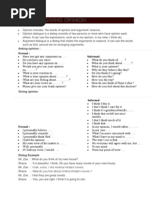 Karena pelajaran speaking itu memfokuskan pada kebiasaan praktek maka contoh dialog 2 dan 3 orang ini juga ditulis untuk melatih kemampuan berbicara bahasa inggris. I think in my opinion i feel. 3 contoh dialog expressing opinion bahasa inggris expressing opinion merupakan ungkapan untuk mengemukakan pendapat tentang suatu hal. Opinion dialogue adalah dialog atau percakapan yang dilakukan oleh 2 orang atau lebih yang berisikan tentang ungkapan opini atau argumentasi yang dimiliki oleh mereka msing masing. Dialog bahasa inggris asking and giving opinion. Sekian semoga contoh percakapan bahasa inggris 2 orang asking and giving opinion di atas bermanfaat.