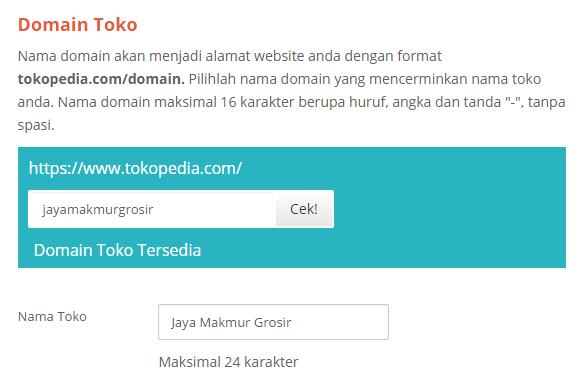 Contoh domain toko di tokopedia. Lihat cara buka toko di tokopedia disini. Jika anda ingin menggunakan nama dan domain toko lain silakan membuat toko baru. Padahal simpel saja domain toko adalah kata kata di belakang nama domain tokopedia anda. Nama toko tidak dapat diubah atau bersifat permanen sesuai dengan syarat dan ketentuan tokopedia pada poin b nomor 11. Hal yang perlu anda ketahui tentang nama domain di tokopedia adalah keyakinan konsumen untuk memilih berbelanja di toko anda. Kalau ingin lebih jelas berikut ini step by step cara membuka toko di tokopedia.