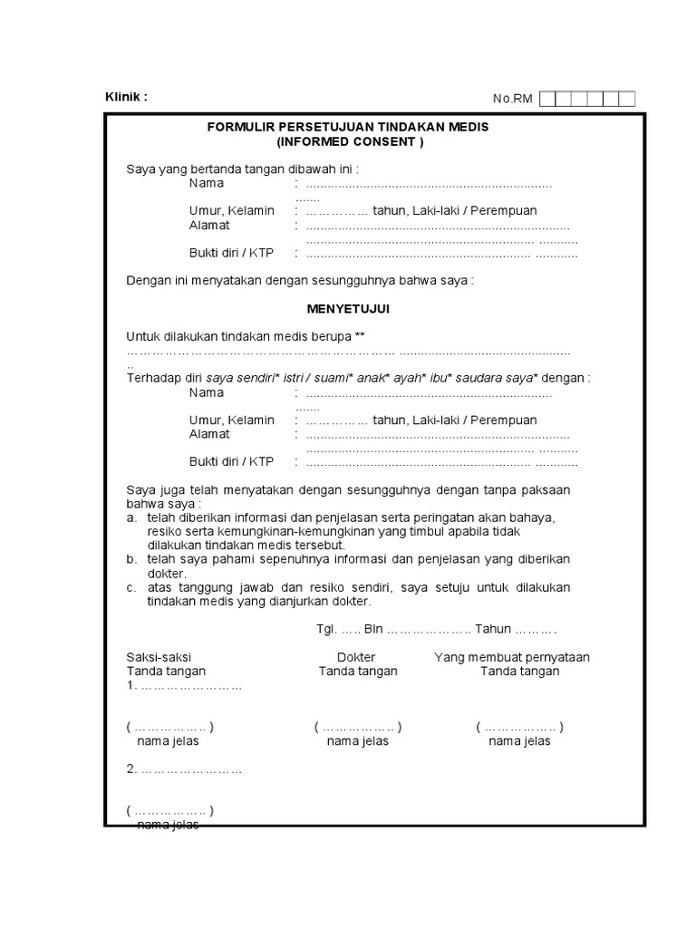 Contoh informed consent tindakan medis. Related posts to contoh formulir informed consent tindakan medis contoh formulir informed consent tindakan medis 2017 10 21t003600 0700 rating. Contoh informed consent. Teori teori konseling agama dan umum. Informed consent terdiri dari kata informed yang berarti telah mendapatkan informasi dan consent berarti persetujuan ijin. Academiaedu is a platform for academics to share research papers. Contoh format informed consent pelayanan kb.
