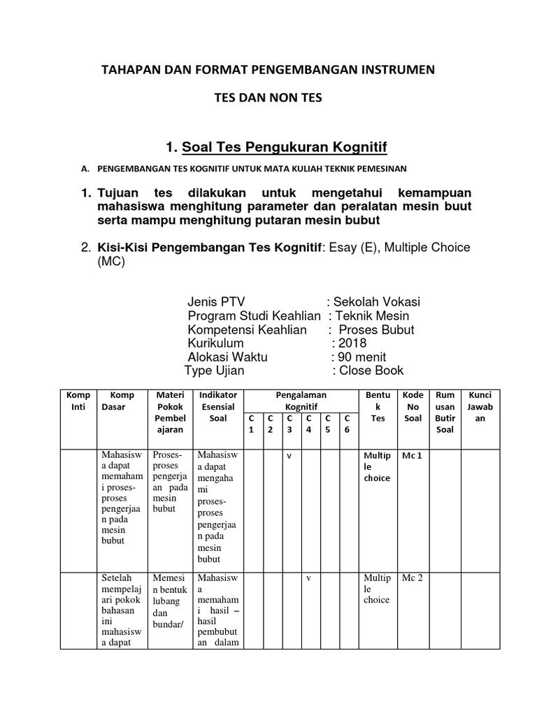 Menganalisis hasil uji coba 8. Penilaian yang dilakukan dengan teknis nontes terutama bertujuan untuk memperoleh informasi yang berkaitan dengan evaluasi hasil belajar peserta didik dari segi ranah sikap hidup affective domain dan ranah ketrampilan psychomotoric. Menentukan spesifikasi instrumen 2. Berdasarkan bentuk atau jenisnya tes dibedakan menjadi tes uraian dan obyektif sedangkan nontes terdiri dari observasi wawancara interview angket questionaire pemeriksaan document documentary analysis dan sosiometriinstrumen yang berbentuk test bersifat performansi maksimum sedang instrumen nontes bersifat performansi. Contoh instrumen penilaian tes dan non tes. Tehnik penilaian ini umumnya untuk menilai kepribadian anak secara menyeluruh meliputi sikap tingkah laku sifat sikap sosial ucapan riwayat hidup dan lain lain.