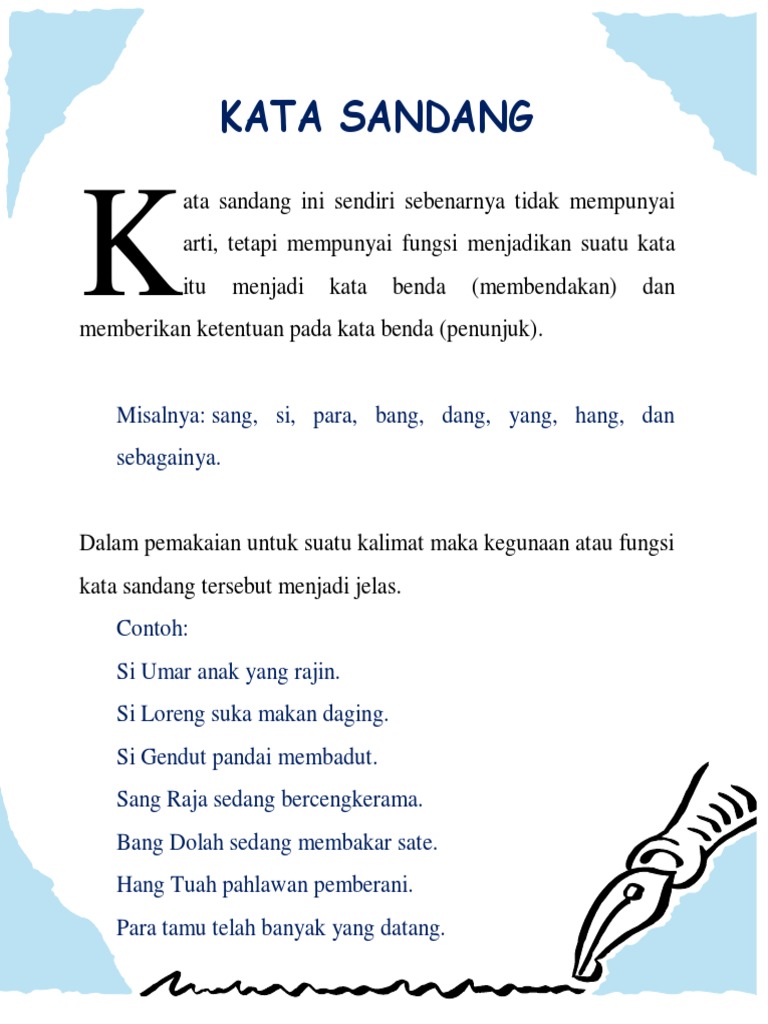 Baik itu subjek berupa orang binatang benda ataupun entitas. Membendakan suatu kata atau frase. Pertama sifat atau hal yang berarti dua. Jenis jenis kata benda dan 113 contohnya dalam bahasa indonesia dilengkapi dengan pengertian ciri jenis dan contoh yang super banyak dalam kalimat. Di dalam bahasa indonesia kata sandang memiliki fungsi sebagai berikut. Kemungkinan yang mempunyai dua pengertian.