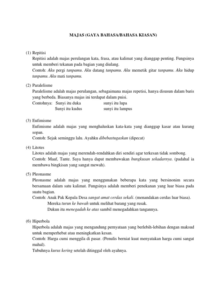 Gaya bahasa yang menarik tentunya akan. Nah salah satunya yang akan kita bahas pada kesempatan kali ini yaitu majas litotes dengan hal hal yang berkaitan didalamnya. Perlu kalian ketahui bahwa majas memiliki banyak sekali jenisnya. Majas ini biasanya terdengar agak berlebihan dan bertentangan dengan kenyataan si pembicara yang sebenarnya. 117 contoh majas litotes pengertian ciri dan fungsi untuk pembahasan kali ini kami akan mengulas mengenai majas litotes yang dimana dalam hal ini meliputi pengertian ciri fungsi dan contoh nah agar dapat lebih memahami dan dimengerti simak ulasan selengkapnya dibawah ini. Majas litotes didalam mata pelajaran bahasa indonesia majas adalah salah satu materi yang paling sering dipelajari di sekolah.