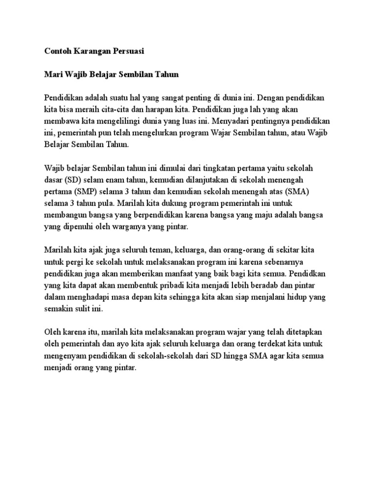 Contoh karangan persuasi tentang pendidikan dalam dunia penulisan kita telah mengenal berbagai bentuk penulisan. Dalam artikel ini kami akan secara khusus membahas contoh esai esai tentang pendidikan. Jenis karangan ini biasanya digunakan untuk mengungkapkan gagasan yang merupakan hasil kegiatan seseorang untuk tujuan menghibur. Contoh jurnal inilah karangan bebas tentang diri sendiri yang anda perlukan. Contoh karangan tentang liburan sekolah sepertinya setiap tahun cukup banyak waktu liburan. Contoh karangan persuasi tentang pendidikan dalam dunia tulis menulis kita telah mengenal berbagai macam bentuk karangan.