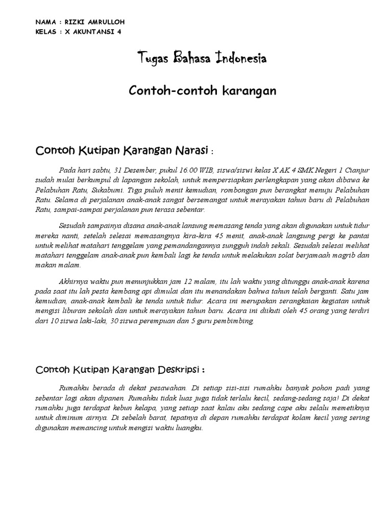 Di sini contoh karangan narasi wawancara. Pasti seru dong ya baik yang liburannya jalan jalan maupun yang liburannya di rumah aja. Wisata ke pantai bajul mati saat libur sekolah. Kumpulan contoh karangan liburan sekolah dirumah halo gays gimana liburannya kemaren. Contoh tugas karangan liburan sekolah liburan sekolah di rumah membantu ibu. Contoh karangan narasi tentang liburan.