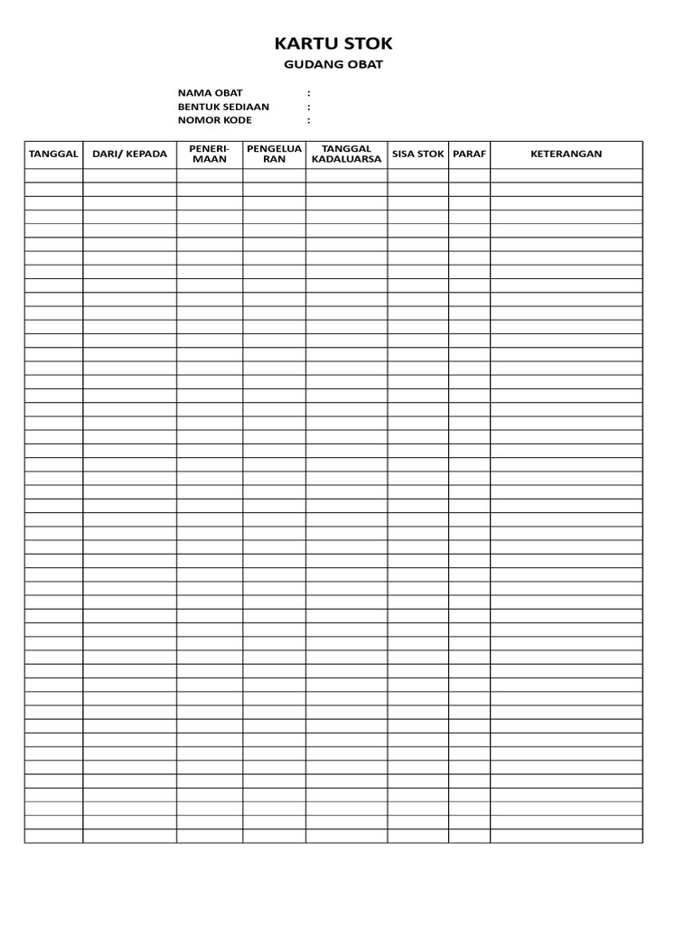 Contoh kartu stok gudang. Pada artikel kali ini admin akan memberikan contoh latihan yaitu membuat aplikasi stok barang rumus excel. Buatlah tabel kartu persediaan stok dengan model seperti dibawah ini. Pada pelaksanaannya biasanya kartu count tag ini dibuat dua rangkap yaitu yang asli diberikan kepada team admin dan yang copy di tempelkan di barang yang sudah dihitung. Dalam file contoh rumus vlookup ini saya gunakan dalam sheet mutasi dan kartu stok untuk mengambil nama barang berdasarkan kode barang. Mohon bantuan contoh pengelolaan jumlah barang sampai seribu item pak. Termasuk laporan laporan lain seperti.