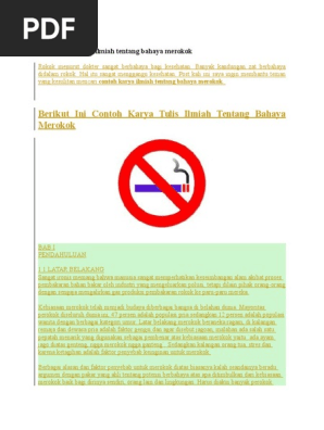 Contoh karya ilmiah tentang bahaya merokok. Karya ilmiah ini di susun oleh kelompok kami. Yang kami sajikan berdasarkan pengamatan dari berbagai sumber. Banyak kandungan zat berbahaya didalam rokok. Melalui resolusi tahun 1983 organisasi kesehatan dunia who telah menetapkan tanggal 31 mei sebagai hari bebas tembakau sedunia setiap tahunbahaya merokok terhadap kesehatan tubuh telah diteliti dan dibuktikan oleh banyak orangefek efek yang merugikan akibat merokok pun sudah diketahui dengan jelasbanyak penelitian membuktikan bahwa kebiasaan merokok meningkatkan risiko timbulnya berbagai. Hal itu sangat menggangu kesehatan. Telah menetapkan tanggal 31 mei sebagai hari bebas tembakau sedunia setiap tahunbahaya merokok terhadap kesehatan tubuh telah diteliti dan dibuktikan oleh banyak orangefek efek yang merugikan akibat merokok pun sudah diketahui dengan jelasbanyak penelitian membuktikan bahwa kebiasaan.
