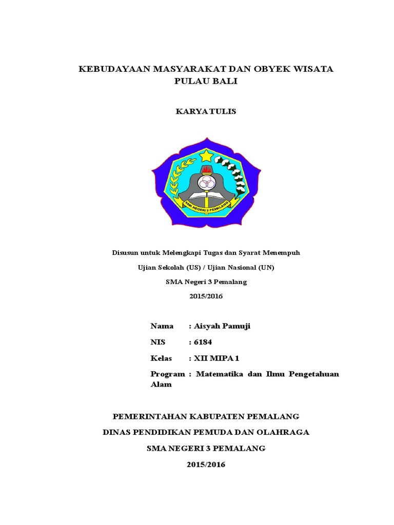 Latar belakang budaya jawa sebenarnya sangat banyak dan beragam. Monumen nasional monas disusun sebagai salah satu mengikuti un ujian nasional di smp n 1 karangmoncol. Silahkan cari yang anda butuhkan terima kasih. Dari contoh karya tulis berikut di harapkan rekan pelajar semua bisa mendapatkan gambaran mengenai isi dari laporan ini. Makalah laporan karya tulis ilmiah karya ilmiah remaja laporan study tour proposal dan karya tulis lainnya. Xdlmxdhansheia3 yang meliputi kota kota berikut cirebon yogyakarta semarangdisusun oleh.