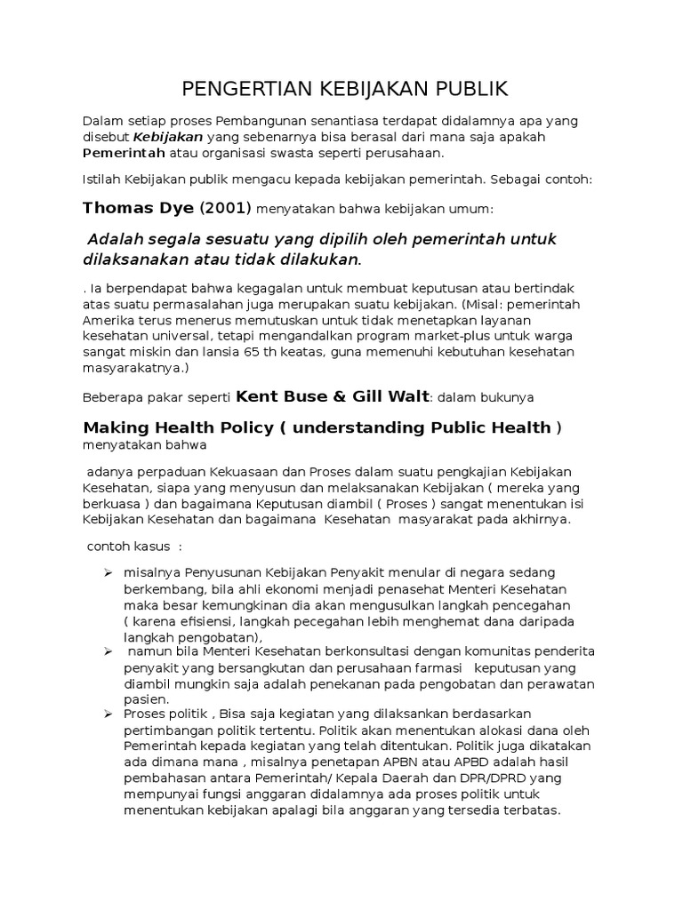 Contoh kasus kebijakan publik. Kebijakan model ini juga melihat dari tuntutan tuntutan dukungan masukan yang selanjutnya di ubah menjadi kebijakan punlik yang otoritatif bagi seluruh anggota masyarakat. Kebijakan publik merupakan peraturan yang dibuat oleh pemerintah untuk mengatur kehidupan bersama dengan tujuan yang telah disepakati. Kebijakan publik adalah kebijakan kebijakan yang dibuat oleh pemerintah sebagai otoritas yang pembuat kebijakan untuk mencapai tujuan tujuan tertentu di masyarakat di mana dalam penyusunannya melalui berbagai tahapan. Mari kita simak 19 contoh kebijakan publik di masyarakat berikut ini. Intinya sistem politik berfungsi mengubah inputs menjadi outputs. Berikut saya berikan 5 contoh kasus yang akhirnya menjadi kebijakan public.