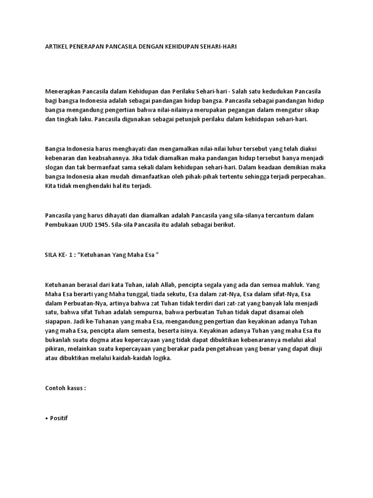 Contoh kasus pancasila dalam kehidupan sehari hari. Terdapat banyak nilai nilai yang terkandung dalam pancasila. Contoh penerapan nilai nilai pancasila dalam kehidupan sehari hari sesuai dengan sila kedua ialah dengan menjaga kelestarian alam sekitarmu. Dalam kehidupan sehari hari banyak sekali contoh etika yang dapat digunakan menjadi acuan dalam melakukan suatu tindakan atau perbuatan dan bisa menjadi sebuah pembelajaran. Bangsa indonesia harus menghayati dan mengamalkan nilai nilai luhur tersebut yang telah diakui kebenaran dan keabsahannya. Dalam kehidupan sehari hari banyak sekali contoh etika yang dapat digunakan menjadi acuan dalam melakukan suatu tindakan atau perbuatan dan bisa menjadi sebuah pembelajaran. Contoh kasus dalam kehidupan sehari hari 1.
