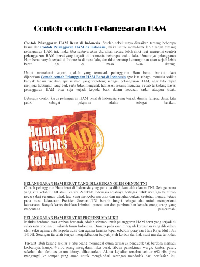 Pemerintahan orde baru kemudian menuding partai komunis indonesia sebagai biang keroknya. Siswa mengejek temanya yang lain. Contoh kasus pelanggaran ham di indonesia ringan yang sering dilakukan adalah pembulian. Desktiminasi guru terhadap murid berdasarkan harta yang dimilikinya. Pengertian pelanggaran ham kasus pelanggaran ham merupakan salah satu kasus yang sudah banyak terjadi pada lingkungan masyarakat secara umum. 20 contoh kasus pelanggaran ham yang terjadi di indonesia.