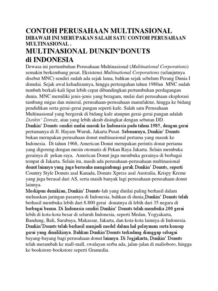 Google merupakan sebuah mesin pencari yang sangat terkenal di seluruh dunia. Baik itu kantor pabrik maupun kantor cabangnya bisa ditemui di banyak negara. Jenis perusahaan yang di gunakan untuk melakukan transaksi internasional tersebut adalah perusahaan multinasional multinational corporationoleh karena itubab ini akan membahas hal hal yang menyangkut perusahaan multinasionalperusahaan multi nasionalmnctermasuk factor faktor yang palingjika tidak yang palingberpengaruh dalam kehidupan ekonomi global dewasa inidalam 30 tahun terakhir. Indonesia sendiri juga memiliki perusahaan berkelas multinasional dengan sistem manajemen global. Contoh perusahaan transnasional tnc dan implikasinya. Perusahaan multinasional disebut juga dengan pmn atau multinational corporation mnc.