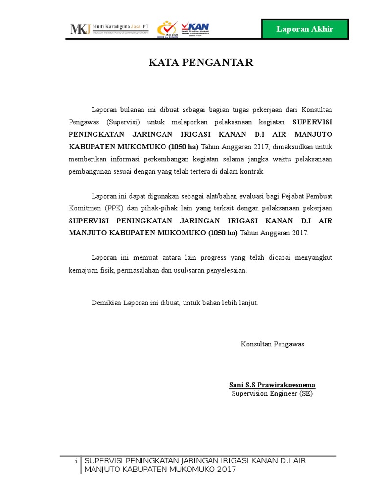 Kata Pengantar Laporan Akhir
