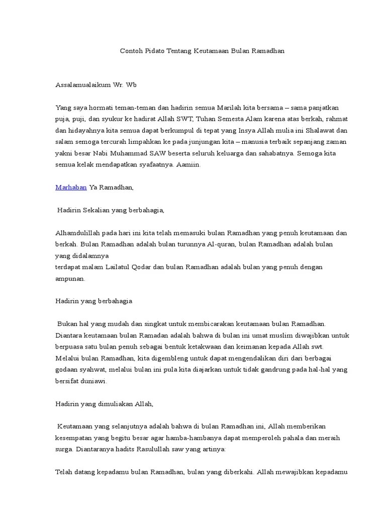 Telah kami kumpulkan 65 contoh khutbah insyaallah bisa langsung diakses pada halaman khusus. Terima kasih sebelumnya wassalam. Jumat adalah hari yang agung. Contoh khutbah jumat khutbah jumat singkat tentang iman kumpulan ceramah islam 2 komentar. 2 komentar untuk keutamaan bulan ramadhan contoh khotbah jumat singkat unknown 14 februari 2017 1241. Al quran bahasa indonesia bacaan 30 juz dan terjemahannya.