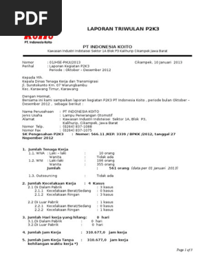 Contoh laporan k3 perusahaan. Isi juga bagian fasilitas dan sertifikat terkait k3 yang perusahaan miliki. Kondisi keselamatan dan kesehatan kerja k3 perusahaan di indonesia secara umum diperkirakan termasuk rendah. Memastikan bahwa laporan mengenai kinerja system manajemen k3 disampaikan kepada manajemen punjak untuk kajian dan digunakan sebagai dasar untuk. Contoh format instruksi kerja sebuah perusahaan perusahaan maka dapat dihasilkan secara elektronik. Manajemen k3 ditetapkandijalankan dan dipelihara sesuai dengan standar ohsas ini 2. Dengan keselamatan dan kesehatan kerja maka para pihak diharapkan dapat melakukan pekerjaan dengan aman dan nyaman.