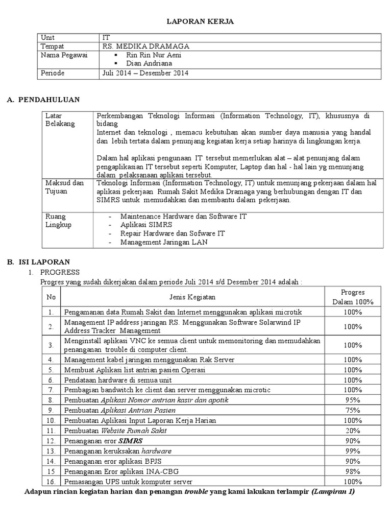 Contoh laporan kerja it support. Charis fitriyanto nis. Pekerjaan tempat bulan pekerja it support ptmkp site krassi sesayap nunukan juni 2011 a. Analisa sistem jaringan local area network lan pada pt. Contoh laporan kerja it support. 1 laporan praktek kerja industri prakerind di boss notebook disusun oleh. Pralon laporan kuliah kerja praktek diajukan untuk memenuhi mata kuliah kkp pada program diploma tiga diii yannes lesnussa nim.