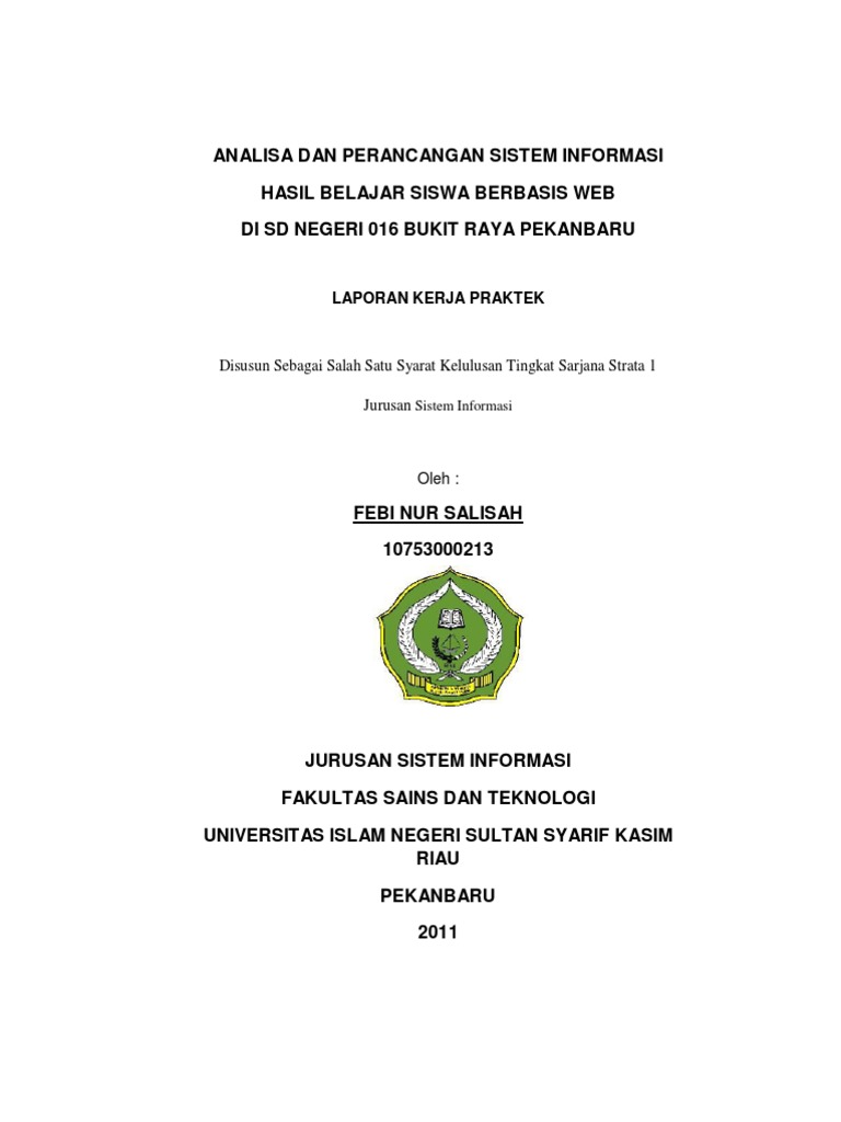 Contoh laporan kerja praktek sistem informasi. Laporan kerja praktek sistem informasi monitoring material gudang pada pt. Ilham daut 12105 55201 11 093 program studi teknik informatika fakultas teknik universitas muhammadiyah maluku utara ternate 2014 2. Sebagai akhir dari bab penulisan kerja praktek ini maka penyusun memberi kesimpulan bahwa sistem penggajian yang telah di buat oleh penyusun akan memberikan kemudahan dalam memberikan informasi baik bagi pihak karyawan sebagai penerima gaji atau pun pihak bpkad yang akan menerima pelaporan penggajian dari dinas sehingga data laporan dapat lebih terorganisir dengan sistem sederhana tersebut. Dalam penulisan laporan kerja praktek ini penulis membahas system informasi pemsesanan jasa system pemesanan jasa konteiner pada pt gebrina utama belawan mengunakan system konputerisasi yang berbasis windows yang umum digunakan perkantoran adalah microsoft office xp 20032007. Laporan kerja praktek sistem informasi monitoring material gudang 1. Pdf laporan praktek kerja lapangan sistem informasi.