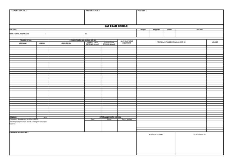 Contoh laporan proyek konstruksi baik itu laporan harian proyek mingguan bulanan dan akhir proyek konstruksi. Academiaedu is a platform for academics to share research papers. Dalam laporan ini dituangkan seluruh kemajuan pekerjaan yang didapatkan baik secara harian mingguan bulanan dan laporan akhir. Contoh format excel laporan bulanan mingguan harian dan jadwal pelaksanaan untuk konsultan pengawas laporan pengawasan sangat penting untuk mengetahui progress di lapangan. Laporan mingguan proyek merupakah sebuah pertanggung jawaban dalam bentuk tertulis mengenai kegiatan yang sudah dijalankan selama satu minggu untuk kemudian dituangkan dalam bentuk tertulis laporan mingguan ini dibuat oleh kontraktor atau konsultan pengawas untuk diberikan kepada owner atau pemilik proyek. Laporan ini akan menjadi gambaran secara keseluruhan apa yang telah terlaksana selama pekerjaan pengerasan paving blok berlangsung.