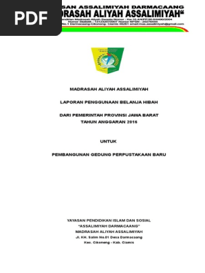Pengadaan ruang kelas baru sekolah baik untuk jenjang sdmi smpmts dan smamasmk. Sehubungan dengan pemberian dana hibah dari pemerintah kabupaten bantul kepada masjid al musyahadah di dusun xi jogonalan kidul tirtonirmolo kasihan bantul sebanyak rp 5000000 lima juta rupiah maka dari itu kami atas nama panitia dan pengurus takmir masjid al musyahadah memberikan laporan pertanggungjawaban tentang dana hibah yang rinciannya terlampir bersama surat ini.