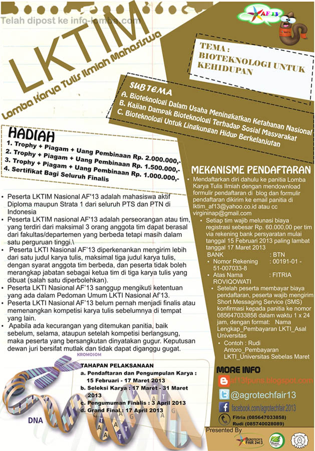 Karya tulis ilmiah belum pernah diikutsertakan dalam lomba karya tulis di tingkat manapun kecuali pada rangkaian pemilihan mahasiswa berprestasi. Hari peringatan isra miraj selamat pagi ilkomers. Lomba karya tulis ilmiah define nasional 2020 di universitas diponegoro admin add comment agustus karya tulis lkti mahasiswa lomba 2020 mahasiswa edit hai semua pembaca yang menunggu postingan dari mimin info lomba 2020. Contoh karya ilmiah pemenang lkti. Admin add comment april essay gratis lomba 2020 lomba menulis mahasiswa opini edit hallo temen temen semuanya. What i made might be not the best cause i just achieve faculty layer.
