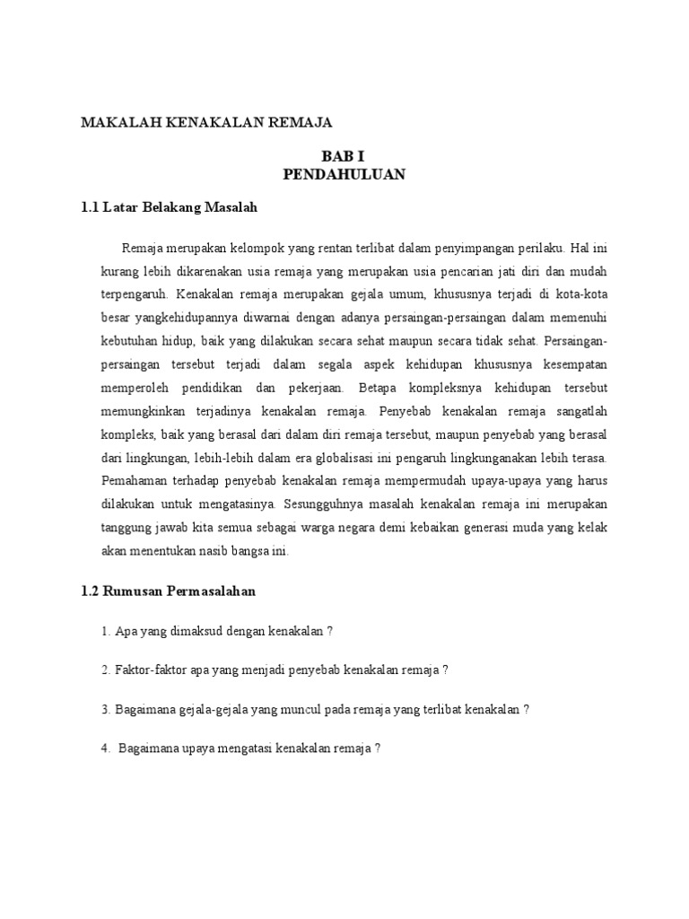 Contoh makalah kenakalan remaja. Biasanya dilakukan oleh anak anak berusia 13 sampai dengan 18 tahun. Semoga materi yang kami berikan dan jangan lupa juga untuk menyimak materi seputar makalah renaissance yang telah kami posting sebelumnya. Perilaku kenakalan remaja saat ini sulit diatasi. Pengertian kenakalan remaja adalah suatu bentuk aktivitas kegiatan ataupun perbuatan yang melanggar norma ketentuan dan peraturan hukum. Baru baru ini sering kita dengar berita ditelevisi maupun di radio yang disebabkan oleh kenakalan remaja diantaranya tawuran pemerkosaan yang dilakukan oleh pelajar sma pemakain narkoba dan lain lain. Makalah kenakalan remaja by iepunks 1216 am 5 comments buat agan agan yang lagi butuh contoh makalah tentang kenakalan remaja mungkin posting kali ini bisa membantu agan sekalian dalam menyelesaikan tugas sekolah dll.