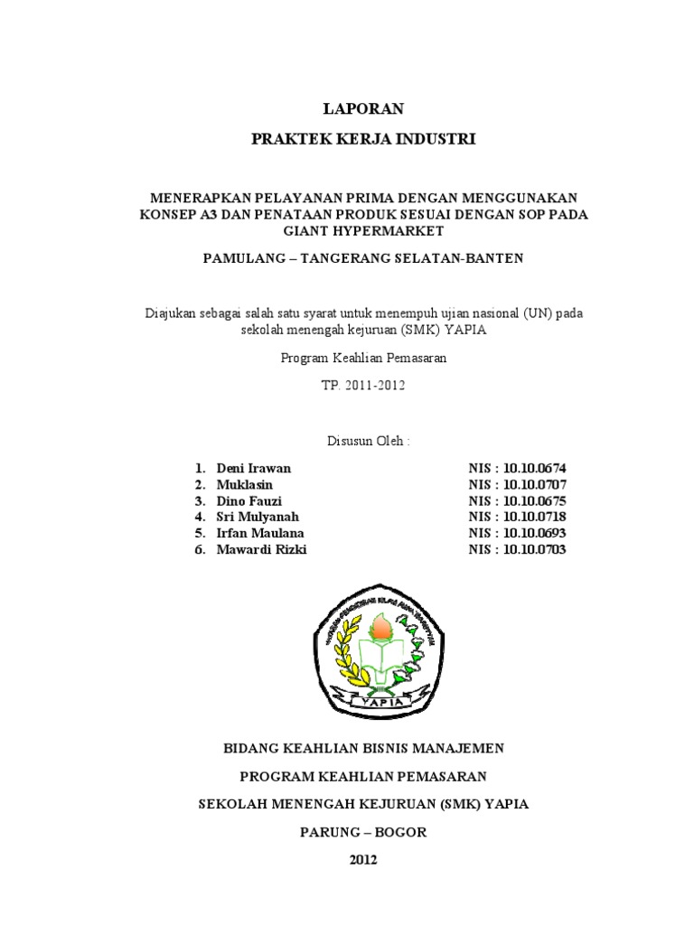 Jajang rachmat 26 desember 2011 1611. Biasanya para pelajar smk akan mengalami masa dimana pelajar smk harus melakukan praktek magang atau prakerin praktek kerja industrikegiatan ini dilakukan bila sobat pelajar smk kelas 11 atau kelas 2 dan dilaksanakan selama 2 atau 3 bulan lamanya di perusahaan atau instansi sesuai keahlian atau jurusan yang diambil sobat. Tujuan prakerin meningkatkan memantapkan dan memperluas wawasan dan pengetahuan yang sudah diperoleh selama kegiatan belajar di kelas guna membentuk kemampuan siswa sebagai bekal untuk memasuki dunia kerja yang sebenarnya sesuai dengan program keahlian yang dipilihnya. Contoh laporan prakerin praktek kerja industri prakerin merupakan suatu pembelajaran yang ddilakukan dalam dunia pendidikan yang mempunyai sistem pendidikan ganda. Prakerin ini merupakan kurikulum sekolah menengah kejuruan yang. Laporan ini disusun sebagai salah satu persyaratan mengikuti uji kompetensi di smkn 4 dumai tahun pelajaran 2012 2013.