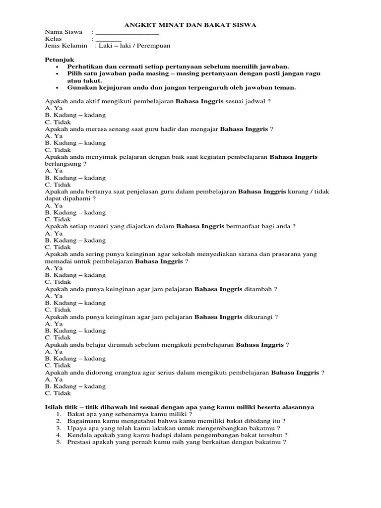 Contoh minat dan bakat siswa. Pendidikancoid pada kesempatan ini kita akan membahas mengenai minat adapun penjelasannya sebagai berikut. Dengan kata lain bakat sudah melekat pada diri manusia sejak saat lahir ke dunia ini. Minat bakat dan kreatifitas siswa harus digali dicari dan dikembangkan. Bakat memungkinkan seseorang untuk mencapai prestasi dalam bidang tertentu akan tetapi diperlukan latihan pengetahuan pengalaman dan dorongan atau. Pengertian bakat macam jenis dan contoh bakat bakat adalah kemampuan yang memang sudah melekat dan dimiliki oleh setiap orang yang bisa digunakan dalam mempelajari sesuatu hal dengan cepat dan bahkan beberapa diantaranya bisa mempelajari dalam waktu singkat serta mendapatkan hasil yang sangat baik pula. Minat ini merupakan dorongan atau keinginan dalam.