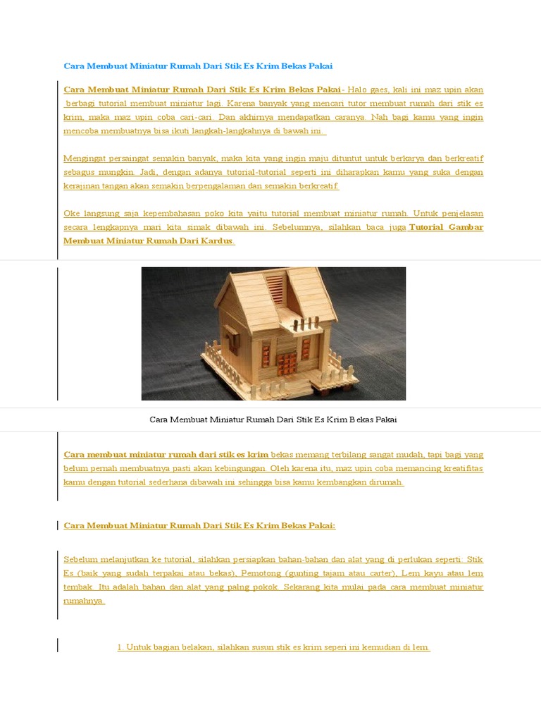 Contoh miniatur rumah dari stik es krim. Selain enak dan lezat es krim bisa mengubah mood menjadi lebih baik. Cara membuat miniatur rumah dari stik es krim di akhir pekas sepertinya akan sangat menyenangkan apabila kita bisa berkreasi dengan membuat suatu kerajinan bersama teman teman bukannah apabila saat ini mungkin kalian sedang bingung apa ya kira kira yang bisa kita manfaatkan untuk membuat sebuah kerajinan dari barang bekas. Tim hidup simpel akan membagikan kamu 100 lebih ide kerajinan dari stik es krim dengan cara membuat video prakarya kreasi contoh miniatur gambar. Saat ini banyak orang yang menyukai es krimdari situlah terinspirasi bahwa. Gambar desain rumah dari stik es krim rumah minimalis sekarang sudah semakin lebih banyak jadi pilihan terutama di kota kota besar di mana tanah lapang yang tersedia kian terbatas. Tujuan tujuan dari makalah ini adalah untuk menginformasikan penjelasan dari bahan limbah stik es krim dan bagaimana cara mengembangkan kreatifitas dalam diri seorang dengan cara membuat kerajinan tangan tetapi kerajinan tangan tersebut bermanfaat bagi orang lain.