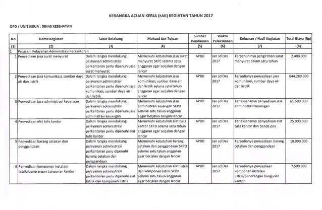 Tabel Output Indiator Program Kegiatan Dinas Kesehatan