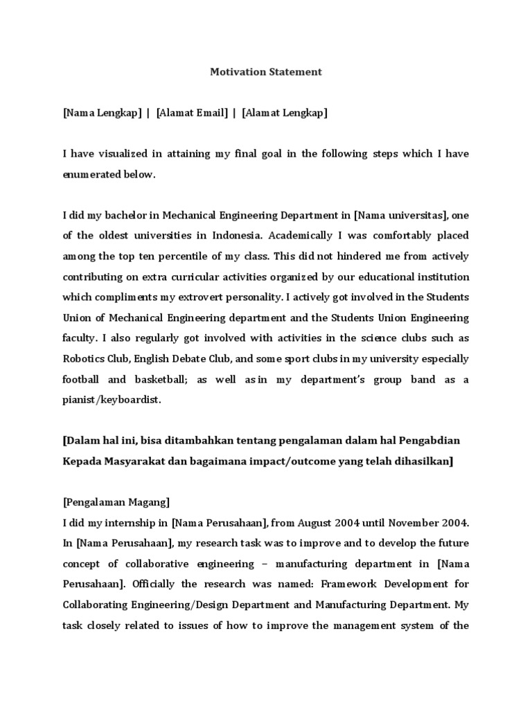 Internships are an important part of any students academic life. Free sample of volunteer motivation letter templates in pdf. Selama masa 4 bulan magang saya telah mempelajari proses kerja dalam bidang sdm dan kemudian meyakinkan saya bahwa manajemen sdm adalah panggilan hati saya. Biasanya sebelum mengirimkan lamaran beasiswa kita diperintah untuk membuat motivation letter dalam bahasa inggris. Motivation letter merupakan sebuah surat yang berisi tentang penjelasan akan motivasi kita untuk bergabung kedalam sebuah perusahaan ataupun untuk melamar sebuah beasiswamotivation letter merupakan surat yang dianggap sangat penting yang akan mendampingi cv atau curriculum vitae karena. February 20 2019 leave a comment.