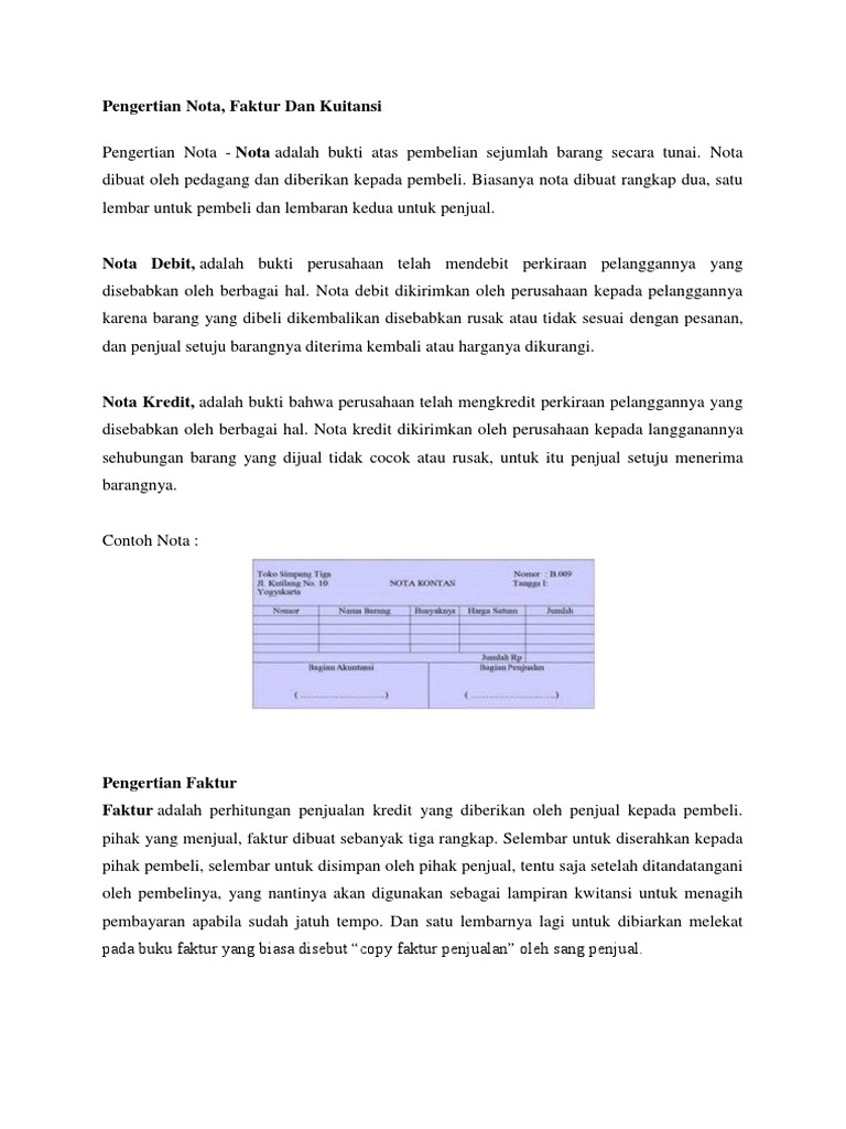 Guruakuntansicoid kali ini akan membahas tentang pengertian dan fungsi kwitansi nota dan faktur beserta contohnya. Nota kredit credit memorandum adalah bukti transaksi penerimaan kembali barang yang telah dijual secara kredit retur penjualan atau pengurangan harga faktur karena barang sebagian rusak atau kualitas yang tidak sesuai dengan pesanan. Nota kredit merupakan dokumen yang dihantar untuk mengurangkan hutang pembeli. Adapun contoh dari nota laundry dibawah ini semoga bisa menjadi referensi anda. Secara umum pengertian kwitansi nota dan faktur adalah sama dalam hal sebagai salah satu kantor atau peralatan bisnis yang digunakan sebagai bukti transaksi pembelian dan penjualan yang sah. Nota asli diserahkan ke pembeli dan copyanya disimpan oleh penjual sebagai bukti transaksi penjualan tunai.