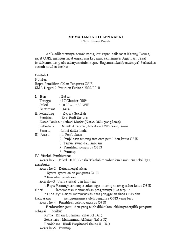 Contoh notulen rapat osis. Contoh notulen rapat sebuah organisasi yang baik tentu harus memiliki administrasi yang baik pula. Ruang osis smk 1 pamanahan. Rapat organisasi intera sekolah smp negeri 1 yogyakarta. 5 contoh notulen rapat kantor sekolah osis diskusi dan seminar. Pada umumnya baik itu organisasi sekoalah maupun kampus dan desa dalam hal pengadaan rapat mengambil keputusan dan muswarah maka akan dibuatlah yang namanaya notulen ini dimana disana akan berisi susunan acara dan apa topik. Contoh notulen rapat yang baik dan benar baik dalam rapat organisasi sekolah atau osis yang dan masih banyak contoh yang lainya bisa sahabat cek dalam artikel kali ini.