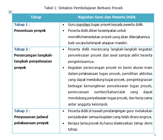 Siswa mengalami dan belajar konsep konsep inti suatu disiplin ilmu melalui proyek. Pembelajaran berbasis proyek tugas project basedtask learning membutuhkan suatu pendekatan pengajaran komprehensif di. Mengingat bahwa masing masing peserta didik memiliki gaya belajar yang berbeda maka pembelajaran berbasis proyek memberikan kesempatan kepada para peserta didik untuk menggali materi dengan menggunakan berbagai cara yang bermakna bagi dirinya serta. Pembelajaran berbasis proyek atau tugas adalah metode belajar yang menggunakan masalah sebagai langkah awal dalam pengumpulan dan mengintegrasikan pengetahuan baru berdasarkan pengalamannya dalam beraktivitas secara nyata. Penerapan pembelajaran berbasis proyek pada matapelajaran penjaskes juga melalui 3 tahap. Pembelajaran berbasis proyek merupakan metode pembelajaran yang berfokus pada siswa dalam kegiatan pemecahan masalah terkait dengan proyek dan tugas tugas bermakna lainnya.