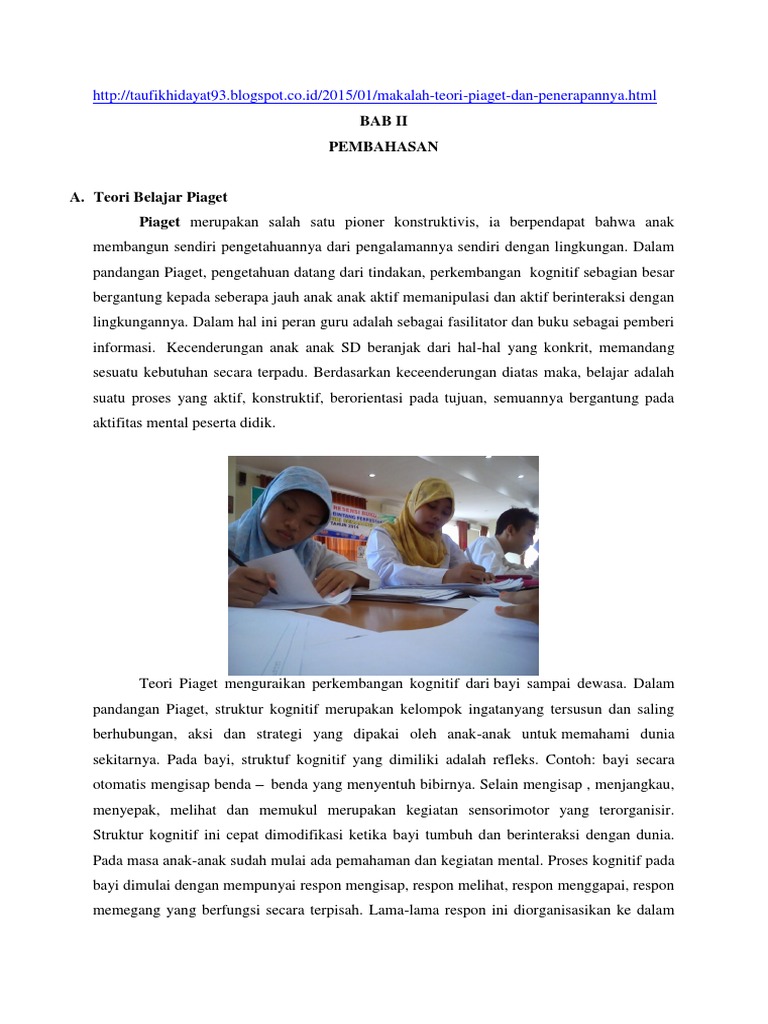 Perkembangan manusia adalah sesuatu yang tidak terpisahkan dari kegiatan kegiatan sosial dan budaya yang merupakan suatu proses proses perkembangan mental seperti ingatan perhatian dan penalaran yang melibatkan pembelajaran dengan menggunakan temuan temuan masyarakat. Dalam upaya mengimplementasikan teori belajar konstruktivisme tytler 1996. Teori belajar adalah upaya untuk menggambarkan bagaimana seseorang dapat belajar sehingga membantu kita memahami proses kompleks inheren pembelajaran. Sebagian ahli seperti kevin thomson 1 berpendapat bahwa orang dewasa cenderung belajar dengan cepat tanpa terlibat langsung dalam proses refleksi dan elaborasi seperti pada teori konstruktivisme. Teori konstruktivisme berpandangan bahwa pembelajar merupakan individu yang unik dengan kebutuhan dan latar belakang yang unik pula. Supaya lebih memudahkan anda dalam memahami apa itu teori belajar konstruktivisme kami akan memberikan beberapa contoh penerapan teori konstruktivisme dalam pembelajaran teori konstruktivisme dalam bentuk pdf dan makalah teori konstruktivisme.