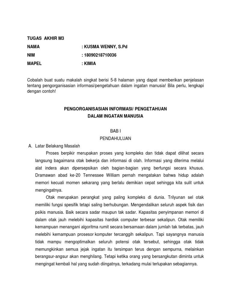 Makalah Pengorganisasian Informasi Pengetahuan Dalam Ingatan