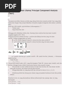 Principal component analysis skripsi oleh. Sesuai dengan fungsinya aku atau pca berguna dalam meringkas data dalam artian komponen utama yang dihasilkan merupakan suatu kombinasi linear dari variabel variabel asli penyusunnya dengan tetap mempertahankan maksimum varians awal. Analisis komponen utama aku atau principal component analysis pca merupakan jenis analisis yang sederhana pada rumpun analisis multivariat interdependensi. Analisis dekomposisi spektral dengan metode principal component analysis skripsi diajukan kepada. Multikolinearitas principal component analysis regresi ridge. Dari kedua principal komponen yang terpilih kemudian dilakukan transformasi dengan pc1 dan pc2 sebagai sumbu koordinat kita yg baru.