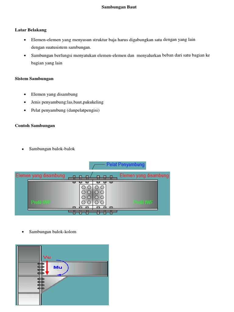 Supported by kuncororobertas at yahoocoid link unduh perhitungan sambungan struktur bajacinnection bearing. Teknik sipil struktur baja kekuatan pada sambungan dengan menggunakan baut. Suatu sambungan pelat ukuran 250 x 12 dengan baut tipe tumpu 25 seperti tergambar. Menerima beban pu 14440 kg dan qu 120 kgm. Baut jenis baut yang digunakan tipe baut. Sambungan baut baja.