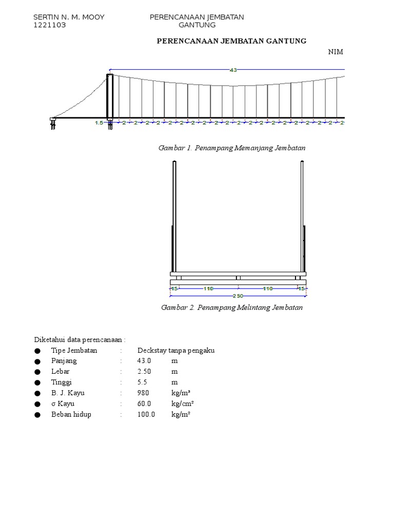 Contoh perhitungan struktur jembatan gantung. Bentuk dan material konstruksi yang. â laporan tugas akhir perhitungan struktur perencanaan jembatan logung ruas kudus pati km. Berikut ini adalah materi lengkap meliputi pengertian rumus gambar dan contoh soal. Struktur atas berupa prestressed concrete box girder tipe continuous girder dua bentang dengan panjang tiap bentang 50 m. Untuk lebih jelasnya simak pembahasan dibawah ini. Perencanaan di lapangan harus ditambahkan pengaruh.