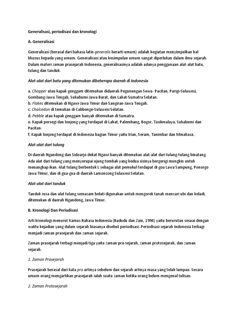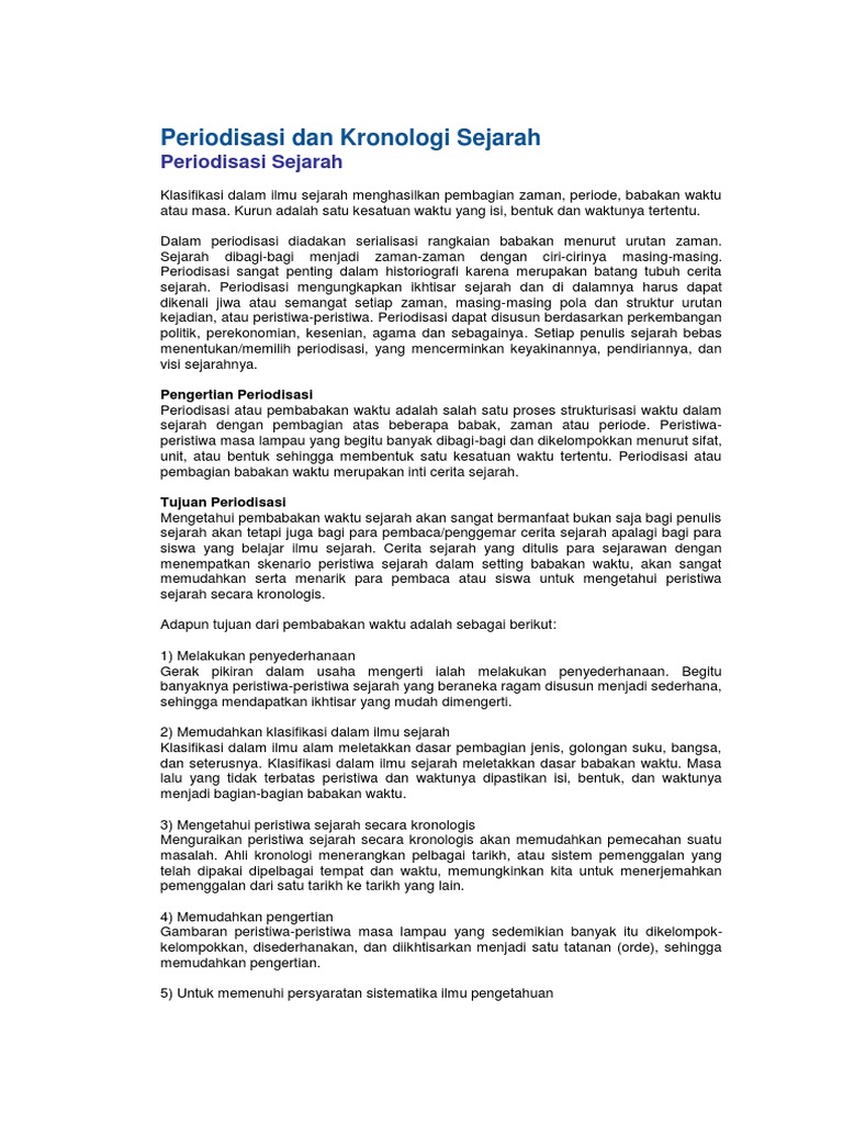 Zaman prasejarah sampai permulaan tarikh masehi. Supaya sesuatu bisa terjadi dia membutuhkan dua hal yaitu waktu dan ruang. Zaman prasejarah 400 membahas perkembangan sosial budaya ekonomi dan kehidupan bangsa indonesia pada masa purba yaitu mulai munculnya tanda tanda kehidupan bangsa indonesia sampai dengan masa bangsa indonesia mengenal tulisan. Periodisasi atau pembabakan waktu adalah salah satu proses strukturisasi waktu dalam sejarah dengan pembagian atas beberapa babak zaman atau periode. Zaman pengaruh hindu budha dan pertumbuhan islam 3. Pengertian periodisasi tujuan manfaat konsep dan contoh periodisasi sejarah lengkap periodisasi merupakan pembabakan dalam sejarah.
