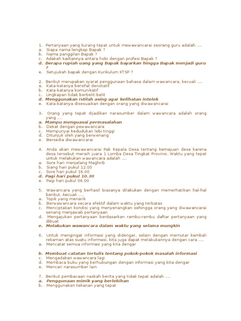 Teks wawancara adalah teks yang menggambarkan kegiatan percakapan reportasi yang dilakukan pewawancara dengan narasumber. Tujuan dilakukan wawancara adalah untuk memperoleh informasi akurat dari narasumber yang terpercaya. 5w 1h yaitu singkatan dari. Wawancara dilakukan dengan cara penyampaian sejumlah pertanyaan dari pewawancara kepada narasumber. Biasanya wawancara dilakukan dengan mengajukan beberapa pertanyaan seputar bidang yang dikuasai oleh narasumber tersebut. Contoh berita wawancara dengan narasumber adalah salah satu artikel yang sangat baik untuk dipelajari oleh anda yang sedang memperdalam teknik teknik di dalam berwawancara sehingga anda akan memiliki gambaran gambaran lebih detail tentang contoh pertanyaan wawancara sekaligus teknik di dalam menjawabnya.