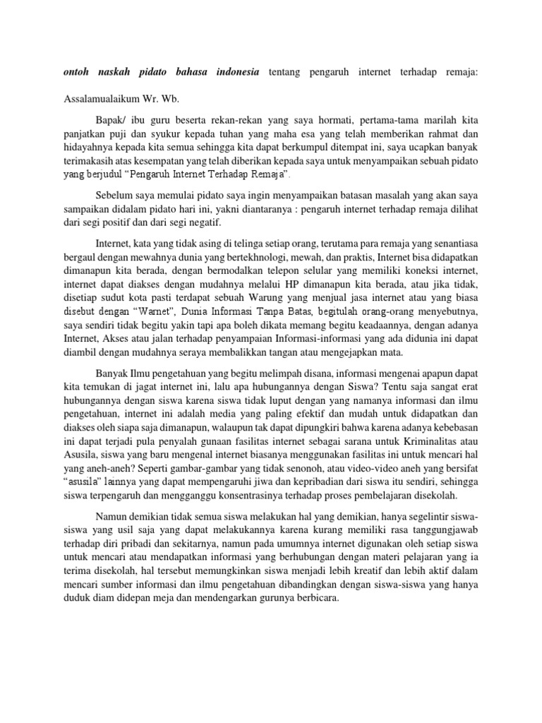 Dengan segala puji bagi allah swt yang sudah memberikan limpahan rahmat serta nikmatnya kepada kita semua sehingga saat ini kita masih bisa menikmati udara segar dan bisa berkumpul dalam keadaan sehat dan suasana kekeluargaan yang berharga pada hari ini. Jika kamu ingin melihat contoh naskah pidato bahasa indonesia coba kamu baca postingan di bawah ini. Para hadirin yang saya hormati. Secara lebih lengkap berikut penjelasan tentang pidato bahasa indonesia yang perlu anda tahu. Kumpulan contoh pidato bahasa indonesia wih dah lama yah gw ga update di blog ini padahal dulu ranknya udah 500 ribuan di google sekarang naik 1juta lebih ya sudahlah itu gara gara saya sibuk di dunia bisnis cie dikarenakan gw ada tugas bahasa indonesia nih di suruh buat pidato terus di hafalin waduhh berabe nih kalau tugas kagak selesai loh kok malah curhat. Contoh pidato singkat pidato singkat tentang narkoba.